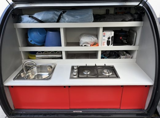 Ein gerade mal vier Meter langer roter Tear-Drop Camper mit Heckküche und Solar war auch mal mein Camping-Traum.